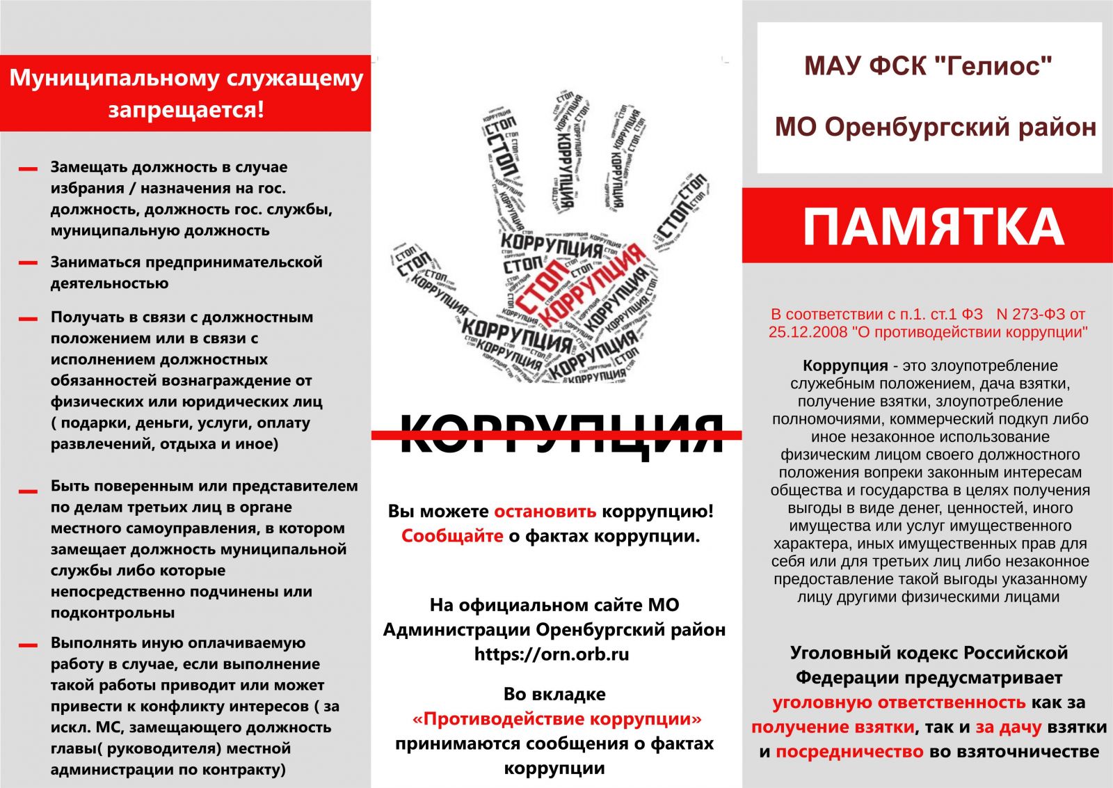 2. Профилактика коррупционных правонарушений в МАУ ФСК «Гелиос»